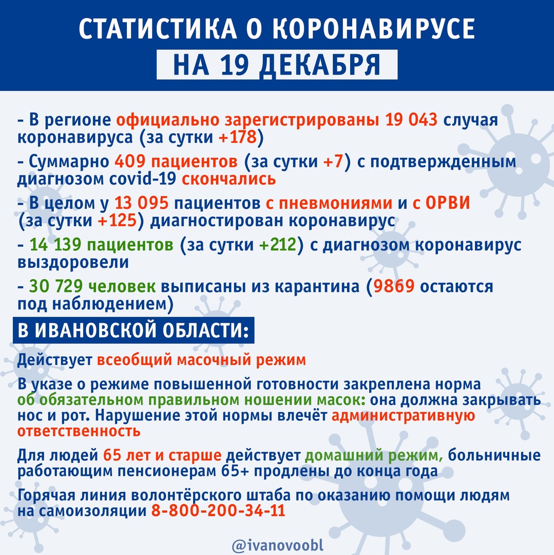 Число официальных ковидных больных в Ивановской области неумолимо приближается к 20 тысячам Рубрика: Общество За сутки 178 заболевших, 7 умерших chastnik.ru