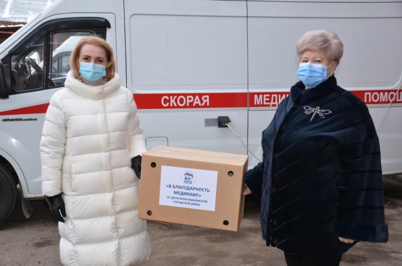 Заместитель Председателя Ивановской городской Думы Галина Бочкова рассказала, что члены фракции «Единая Россия» в Ивановской городской Думе при личном участии Главы города Иванова Владимира Шарыпова выступили с инициативой провести акцию «Благодарность медикам», чтобы выразить слова признательности сотрудникам станции скорой медицинской помощи, которые сейчас на передовой в борьбе с коронавирусной инфекцией.