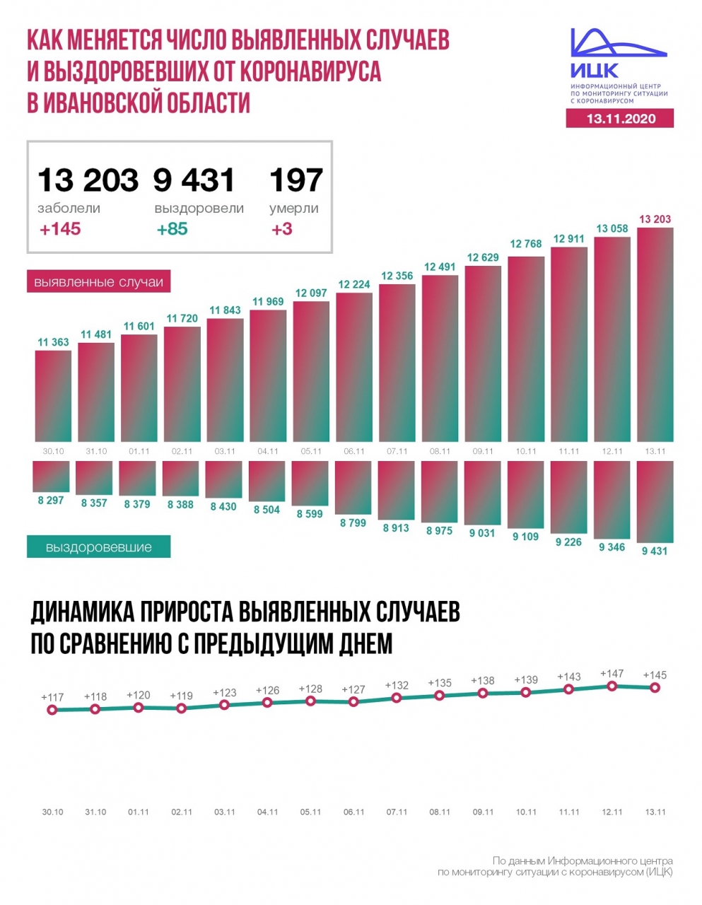 Подтверждено 411 летальных случаев (в Ивановской области — три). Выписано по выздоровлению 18 735 человек.
