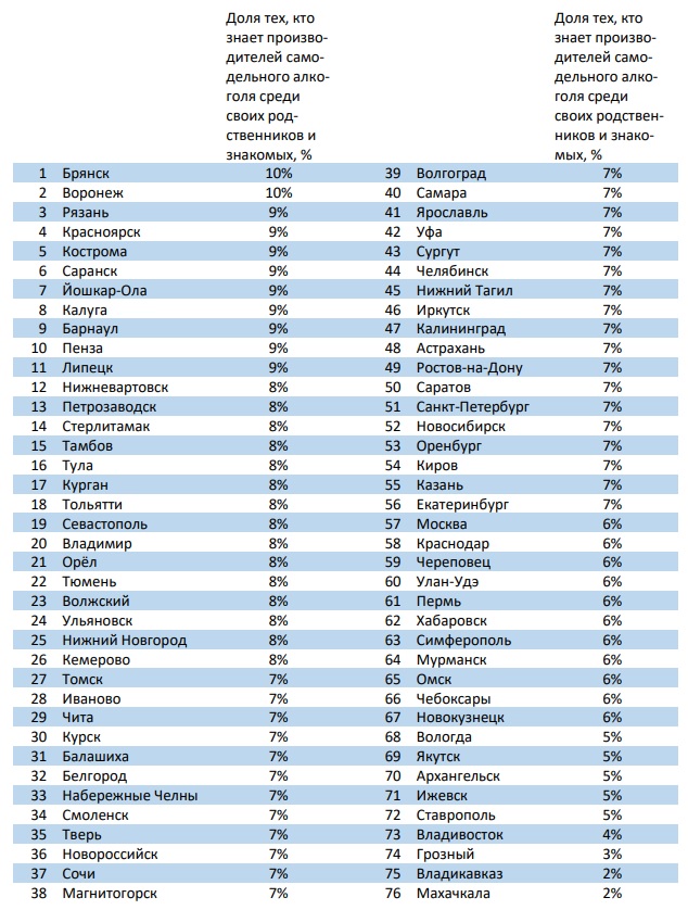 Как поясняют составители рейтинга, рост потребления самодельного или нелегального алкоголя означает снижение реальных доходов граждан.