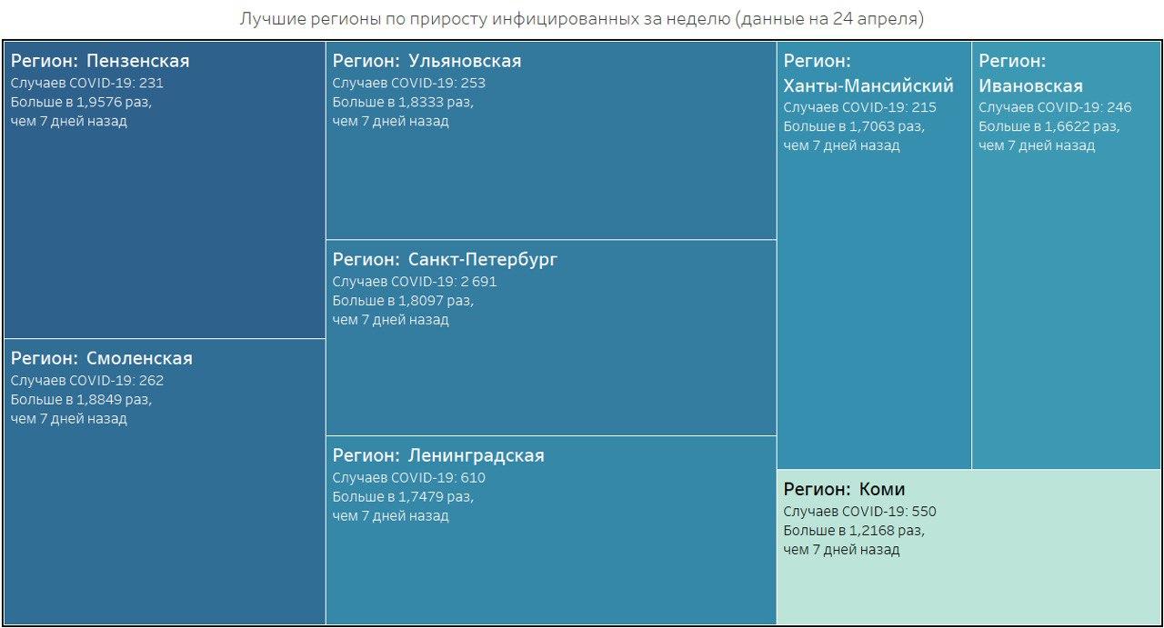 Впрочем, таблица описывает ситуацию, сложившуюся в России на 24 апреля. По данным на 25 апреля, число подтвержденных случаев в Ивановской области выросло еще на 16.