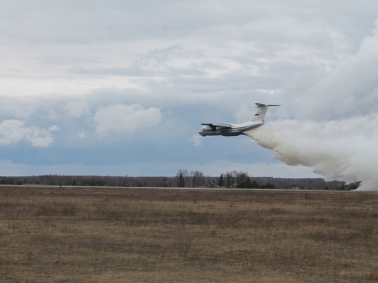 На его тушение с аэродрома «Северный» вылетел специальный ИЛ-76, оборудованный водосливным устройством, за штурвалом которого находился подполковник Алексей Кременчуков.
