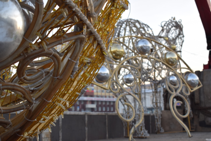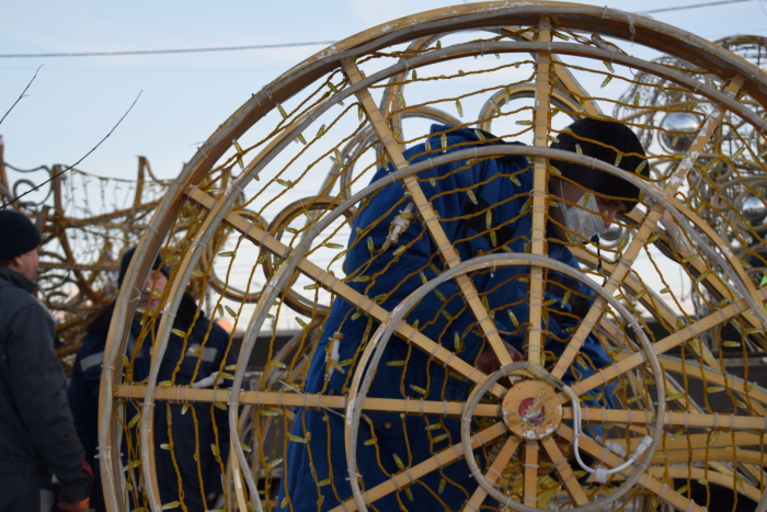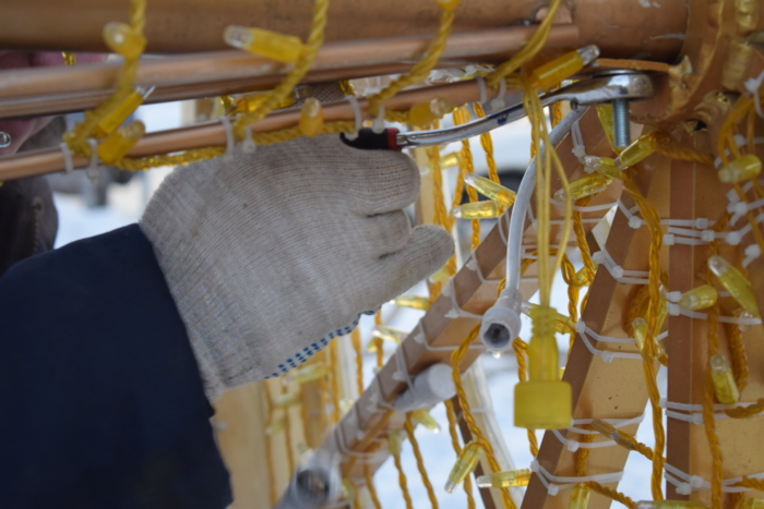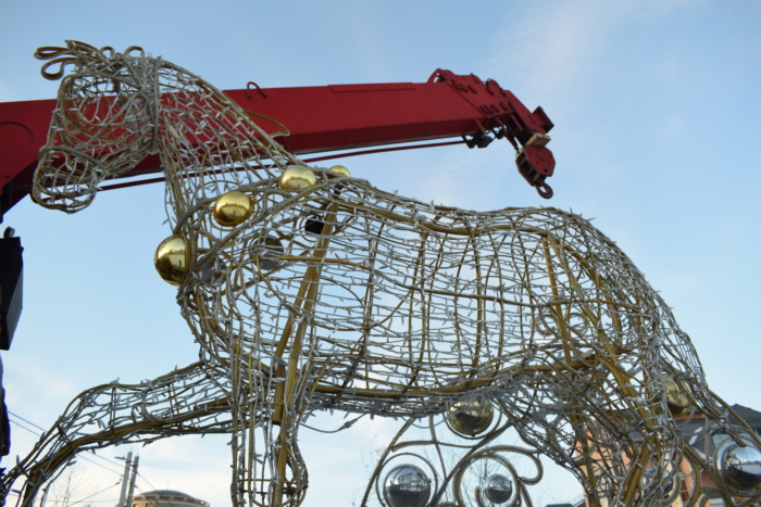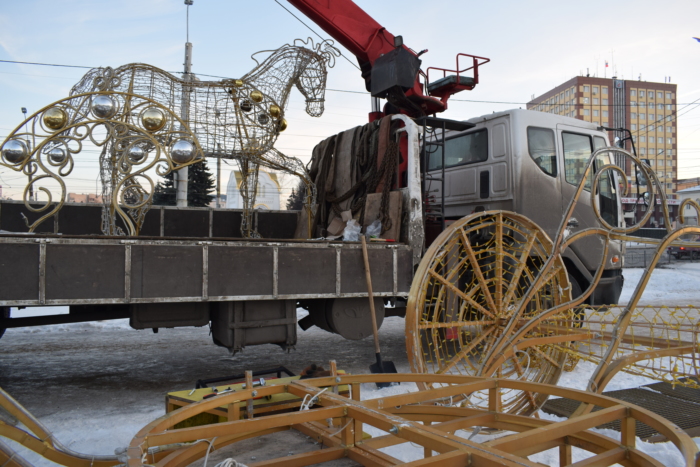 В Иванове энергетики приступили к монтажу светящейся кареты, запряженной парой лошадей. Сказочный арт-объект установят на прежнем месте, в сквера у памятника Якова Гарелина.