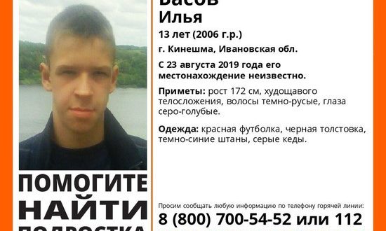 23 августа ушел из дома в Кинешме и до сих пор не вернулся 13-летний Илья Басов. Рост подроста 172 см, волосы светлые, глаза голубые, худощавый. Был одет в…