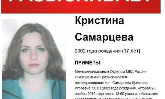 Кристина Самарцева ушла из общежития, где проживала, вчера, 26 ноября, около двух часов дня и с тех пор её местонахождение неизвестно. Выглядит девушка лет на 17-18, рост около…
