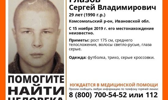 Сергей Владимирович Глазов пропал в Комсомольском районе. Рост у мужчины примерно 1,75 метра, волосы светлые, гласа серо-голубые. В момент, когда он ушел из дома, на нем были одеты…