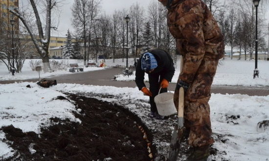 Луковицы тюльпанов сейчас сажают в клумбы на пл. Революции. Как говорят озеленители, в ближайшее время высадка будет продолжена в сквере Гарелина, рядом с Дворцом искусств, на площади Победы…