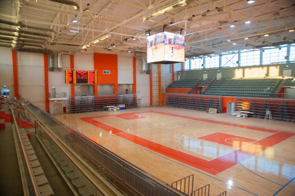 Так, по рекомендации спортивных функционеров заменили покрытие в малом зале с линолеума на паркет. Они также помогали с расположением разметки, настройкой звуковых, световых и мультимедийных систем сопровождения соревнований. В большом зале над паркетом смонтирован видеокуб.