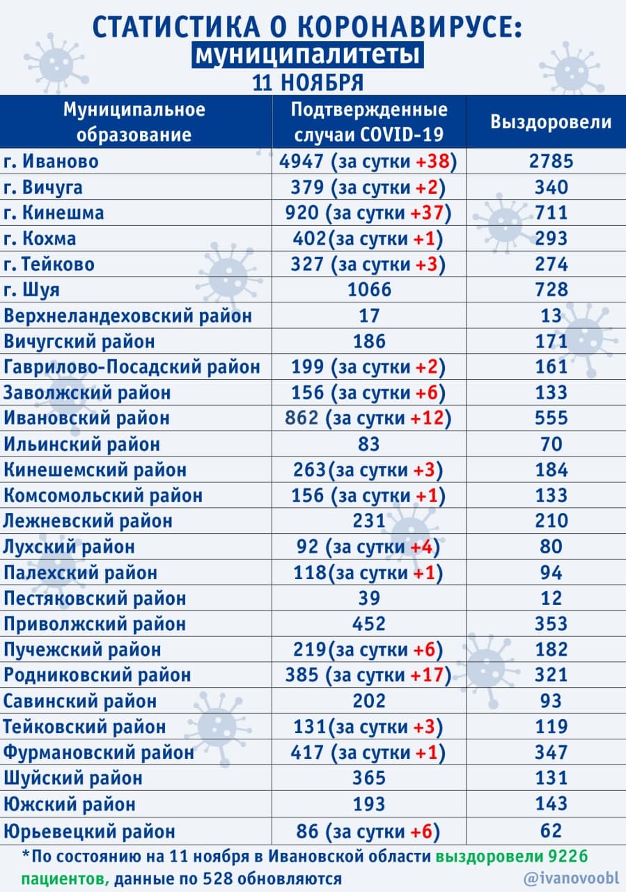 Новых случаев не зарегистрировано в девяти муниципалитетах Ивановской области