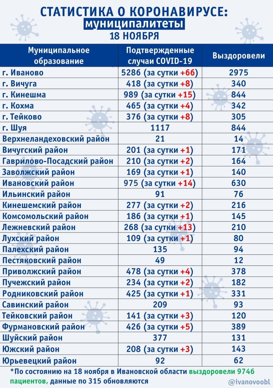 Большинство случаев выявлено в Иванове, Кинешме и Ивановском и Лежневском районах