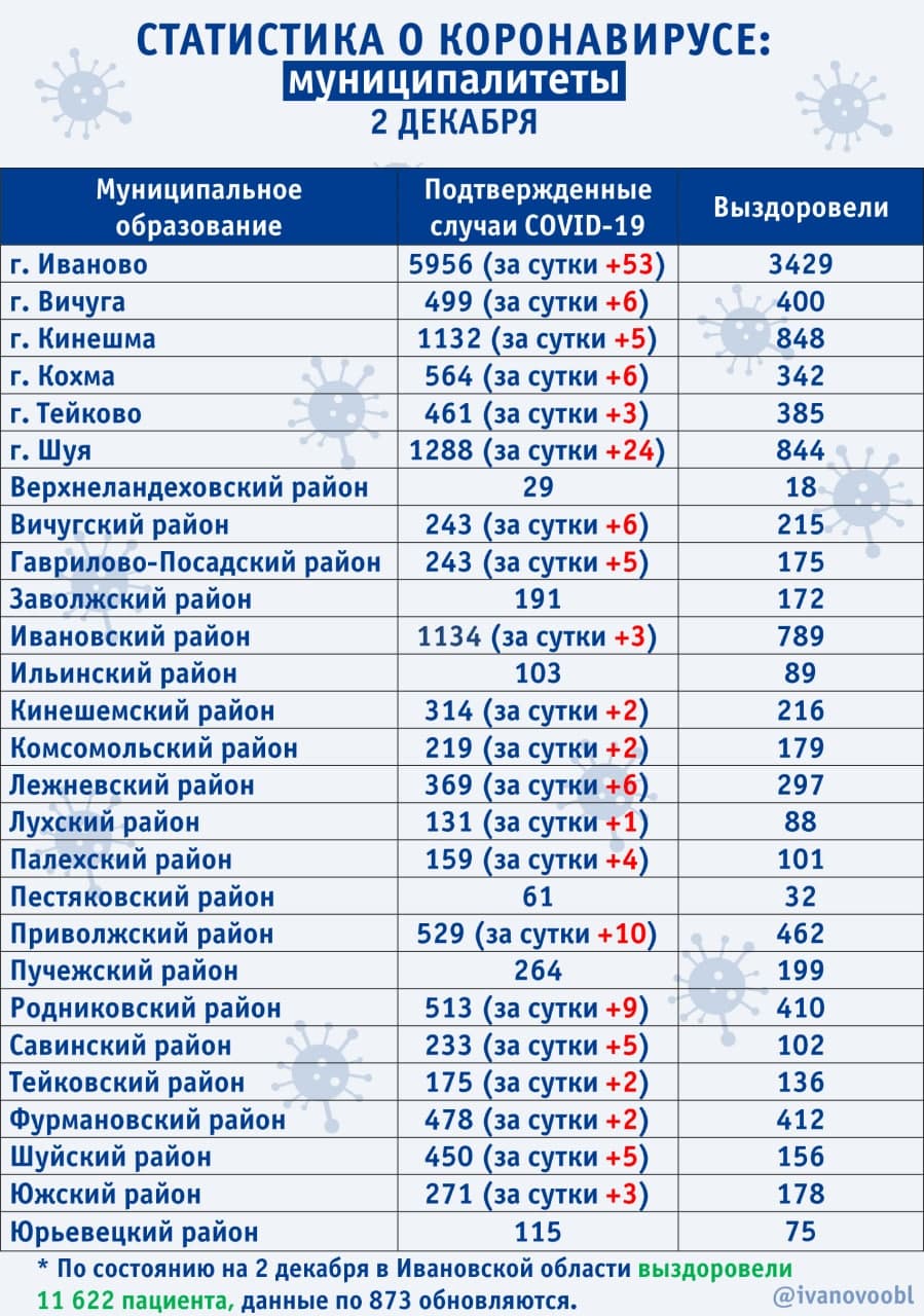 Новые случаи не зарегистрированы в шести муниципалитетах Ивановской области