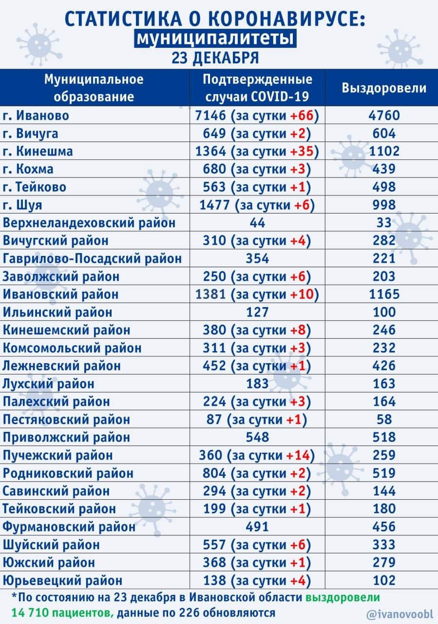 Новые случаи не зарегистрированы в шести муниципалитетах Ивановской области
