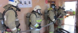 В Комсомольской школе тушили условный пожар. В учениях участвовал личный состав пожарно-спасательной части, который