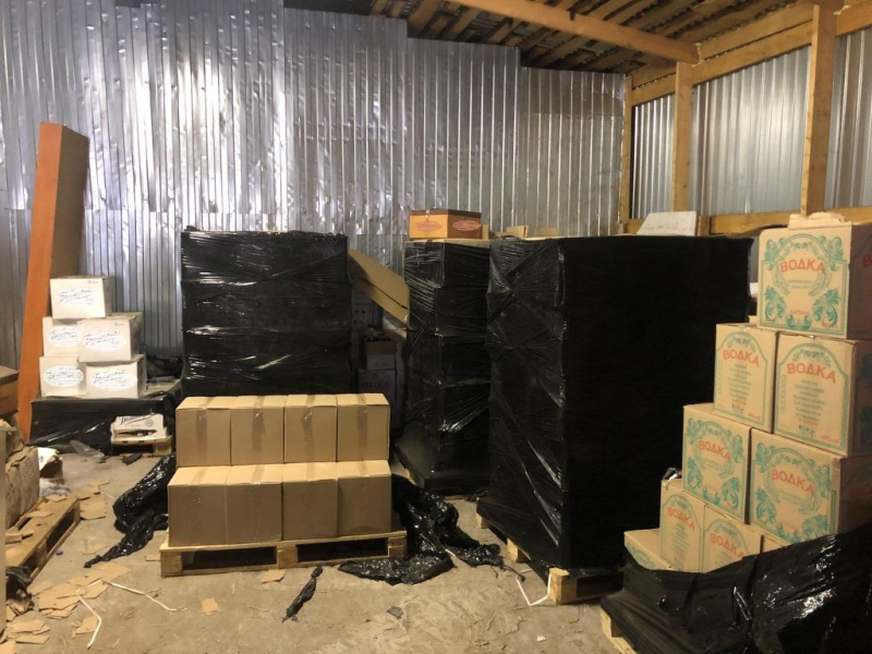 Изъято свыше 18 000 литров спиртосодержащей жидкости. 2300 бутылок уже готовой алкогольной продукции, разлитой в бутылки с этикетками и символикой элитных марок. Более 128 000 пачек сигарет различных наименований.
