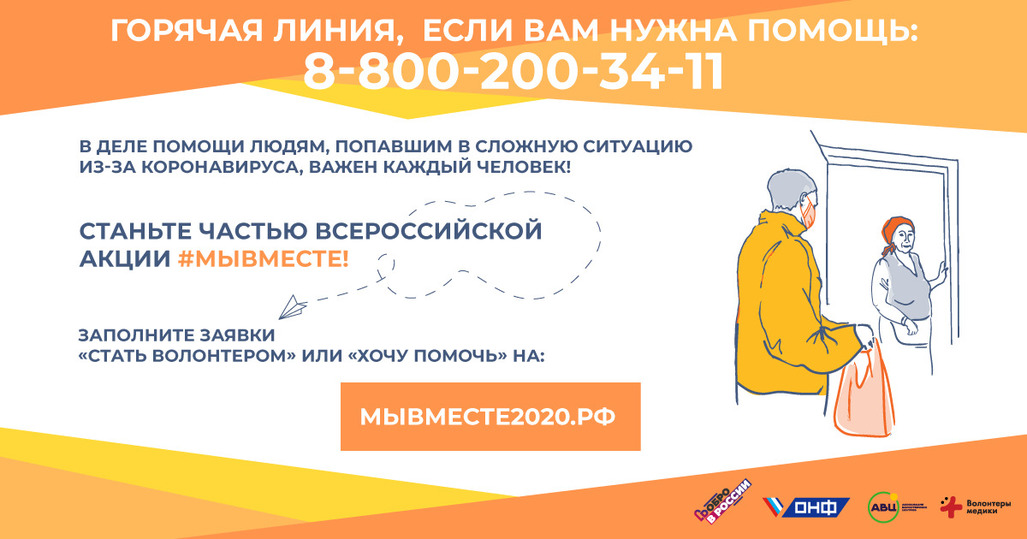 Всероссийский колл-центр принимает заявки по номеру 8-800-200-34-11 на доставку продуктов и лекарств, других предметов первой необходимости. Волонтеры помогают в оплате услуг ЖКХ и оформлении больничных листов. «Ростелеком» предоставил 5 тысяч сим-карт для поддержания бесперебойной связи между ними и ОНФ.