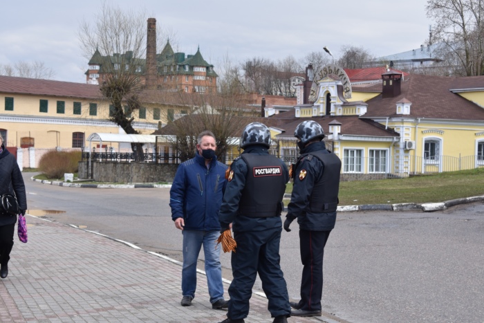 Волонтеры передали Георгиевские ленточки сотрудникам Росгвардии, которые патрулируют улицы Иванова. При проведении профилактических мероприятий экипажи групп вневедомственной охраны Росгвардии вручали ленты жителям области.