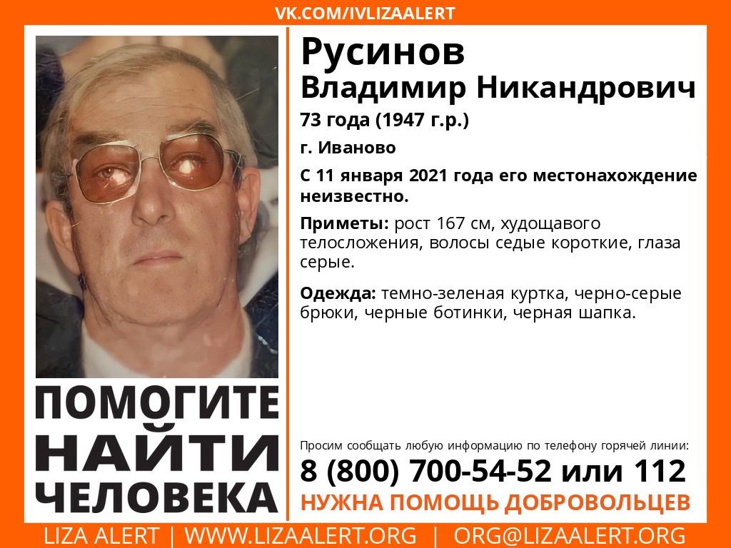 Пропал Русинов Владимир Никандрович, 73 года, Ивановская области, г. Иваново