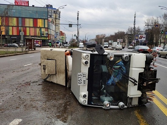 «Дорожный пылесос» опрокинулся на улице Лежневской в областном центре.