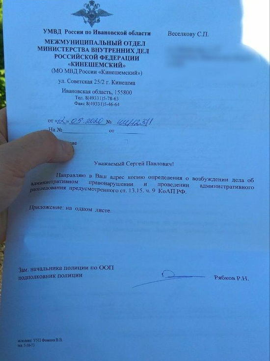 На Сергея Веселкова, фельдшера станции скорой помощи города Кинешма Ивановской области, возбуждено административное дело по статье о распространении «фейковой» информации о коронавирусе (часть 9 ст. 13.15 КоАП). Об этом сообщает общественной организации «Открытая Россия».