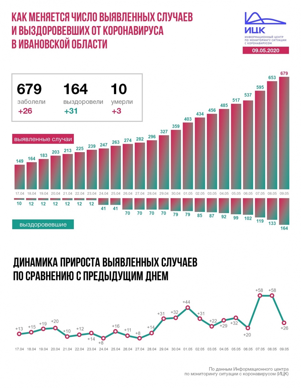 В Ивановской области +26, всего 679. За последние сутки 31 новых выздоровевших, 3 летальных случая. Всего 164 и 10 соответственно.