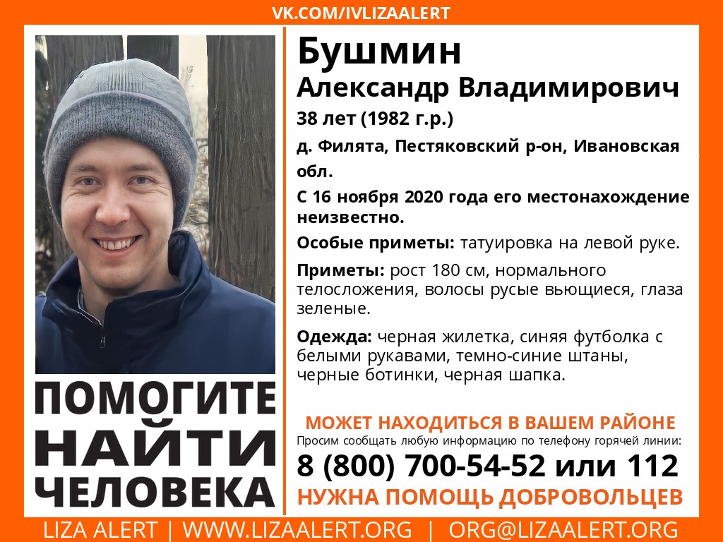Пропал Бушмин Александр Владимирович 38 лет, д. Филята, Пестяковский район, Ивановская область.